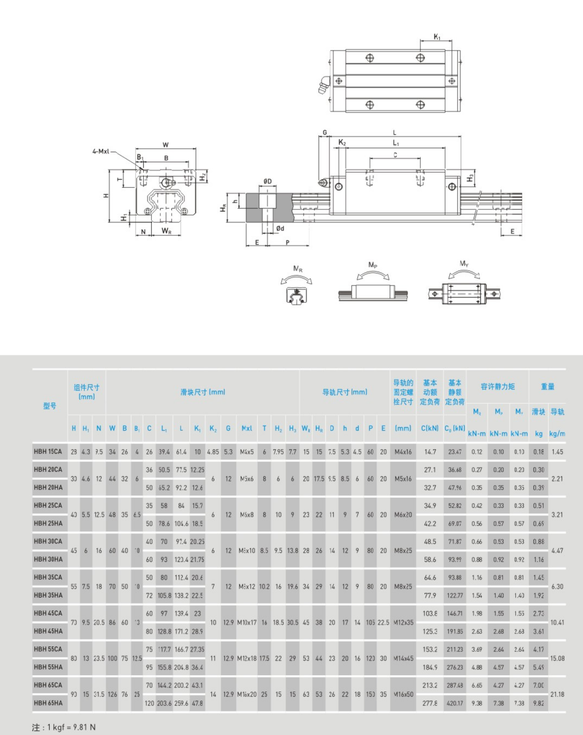 HB系列直线导轨,具备四方向等负荷特色、及自动调心的功能、可吸收安装面的装备误差,得到高精度的诉求。高速度、高负荷、高刚性与高精度化概念已成为未来全世界工业产品发展的趋势。