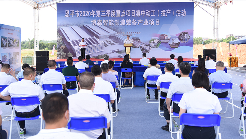 江门市副市长蔡德威,恩平市委副书记、市长刘兵,恩平市领导关凯宁、岑安林等参加710公海寰宇智能制造装备产业项目动工仪式。