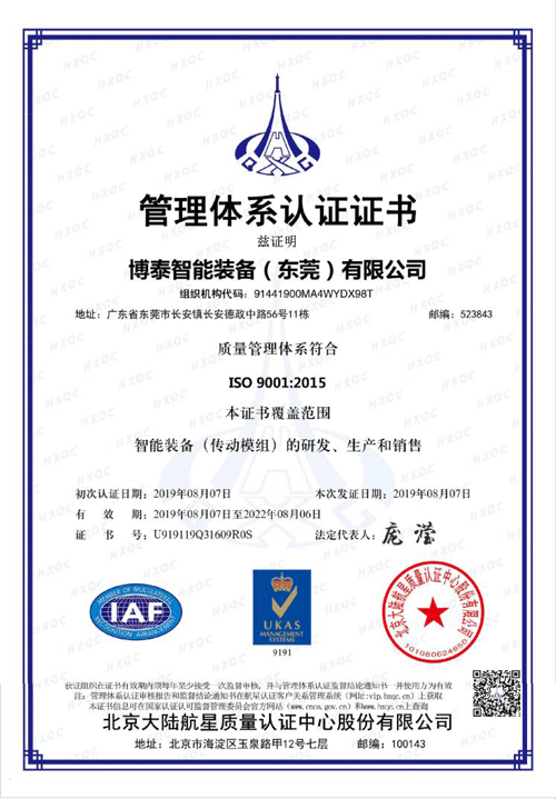 热烈祝贺710公海寰宇智能通过ISO9001质量管理体系认证